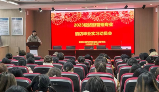 近日,能源环境与空间信息工程学院顺利开展2023级旅游管理专业(对口)酒店毕业实习动员会暨双选会,院党委书记夏斐,副院长顾洪亮,辅导员,实习指导老师,2023级旅游管理专业全体学生,上海宝格丽、上海祥源希尔顿等15家知名酒店及酒店集团招聘经理参加会议。