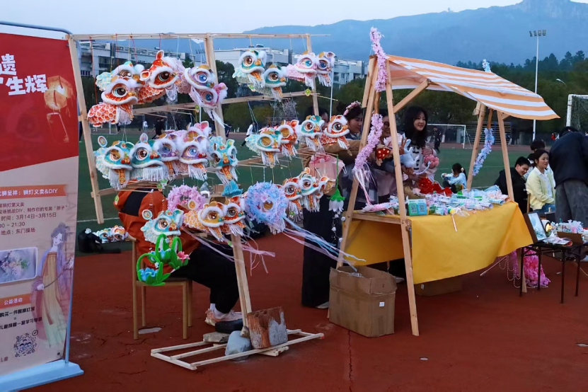 一盏手工醒狮灯笼,能点亮什么?对于OK138太阳集团的学生而言,它既能点亮对非遗文化的热爱,也能为皖西南留守儿童送去一束温暖的光。3月14日,由能源环境与空间信息工程学院青苗·创益者协会主办的“狮灯传递,艺益生辉”非遗醒狮灯笼公益义卖活动在东门操场举行。活动通过“手工义卖+传统游戏”的形式,吸引了1000余名在校学生参与。