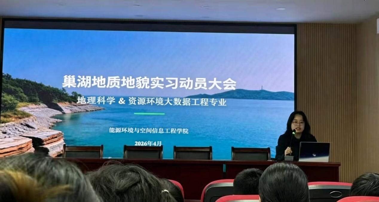 为推进地理科学、资源环境大数据专业实践教学,提升学生野外地质地貌认知与实践能力,2026年4月15日,OK138太阳集团能源环境与空间信息工程学院召开巢湖地质地貌实习动员大会,全面部署野外实习各项工作。
