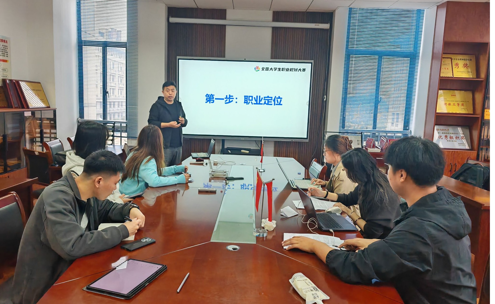 学院领导高度重视此次大赛,将职业规划赛事作为深化就业育人、提升学子就业核心竞争力的重要抓手,多次指导学院备赛,为备赛工作提供全方位保障。赛前,学院动员、指导组建由专业教师、辅导员构成的指导团队,从职业目标合理性、规划路径可行性、文本撰写规范性等维度,对参赛学生的规划方案予以优化指导;举办院级选拔赛,精心遴选 6 名优秀学生,参加职业规划大赛专项培训,邀请合肥致行树教育科技有限公司职业生涯规划师吴遇为学生专项辅导,为备赛奠定扎实基础。